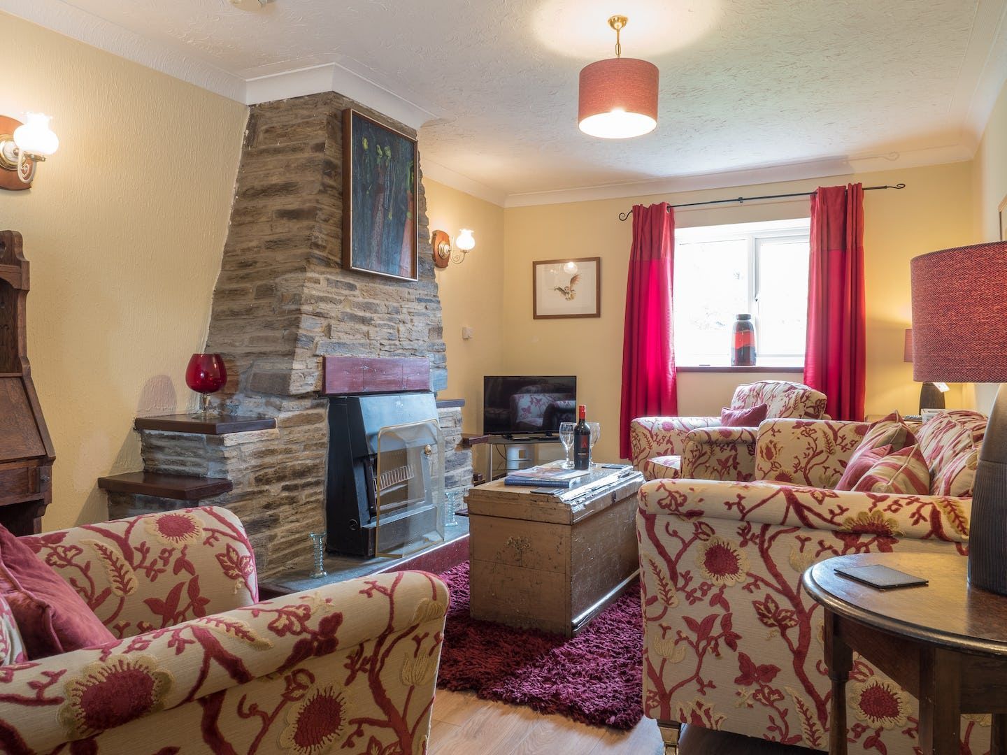 3-seater sofa and 2 armchairs, log-burner, 50" flat screen SmartTV, plus DVD, and a good selection of books and board games